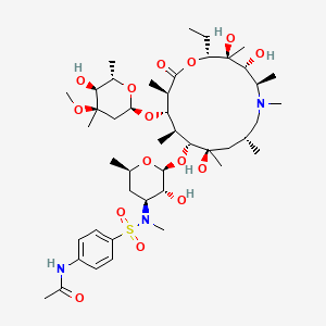 Additional synonymous nomenclature includes the systematic descriptive name "3'-N-[[4-(Acetylamino)phenyl]sulfonyl]-3'-N-demethylazithromycin". Alternative formatting variations of this name appear in various databases and regulatory documents, including "3'-N-[[4-(acetylamino)phenyl]sulfonyl]-3'-N-demethylazithromycin" and "this compound".