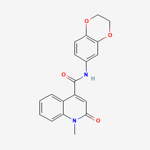 InChI=1S/C19H16N2O4/c1-21-15-5-3-2-4-13(15)14(11-18(21)22)19(23)20-12-6-7-16-17(10-12)25-9-8-24-16/h2-7,10-11H,8-9H2,1H3,(H,20,23) | |