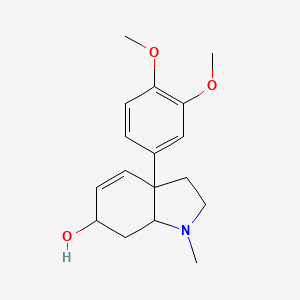 The synthesis of 3a-(3,4-dimethoxyphenyl)-1-methyl-3,6,7,7a-tetrahydro-2H-indol-6-ol typically involves multiple steps. One common method includes the Claisen-Schmidt condensation followed by cyclization reactions. For instance, the condensation of 3,4-dimethoxybenzaldehyde with an appropriate ketone under basic conditions can yield an intermediate, which is then cyclized to form the tetrahydroindole structure .