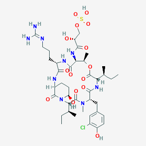 [(2S)-3-[[(2R,5S,8S,11S,12S,15S,18S,21R)-8-[(2S)-butan-2-yl]-2-[(2R)-butan-2-yl]-5-[(3-chloro-4-hydroxyphenyl)methyl]-15-[3-(diaminomethylideneamino)propyl]-21-hydroxy-4,11-dimethyl-3,6,9,13,16,22-hexaoxo-10-oxa-1,4,7,14,17-pentazabicyclo[16.3.1]docosan-12-yl]amino]-2-hydroxy-3-oxopropyl] hydrogen sulfate |
