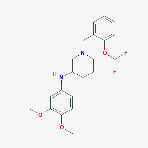 1-[[2-(difluoromethoxy)phenyl]methyl]-N-(3,4-dimethoxyphenyl)piperidin-3-amine is a complex organic compound with potential applications in various scientific fields. This compound is characterized by its unique structure, which includes a piperidine ring substituted with difluoromethoxy and dimethoxyphenyl groups. The presence of these functional groups imparts specific chemical properties to the compound, making it a subject of interest in synthetic chemistry and pharmacology.
