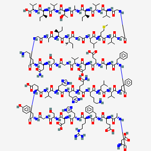 Amyloid β-Protein (Aβ(1-46)) is a 46-residue peptide derived from the amyloid precursor protein (APP) through sequential proteolytic cleavage by β- and ζ-secretases . It is a precursor to shorter Aβ isoforms, such as Aβ(1-40) and Aβ(1-42), which are central to Alzheimer’s disease (AD) pathogenesis due to their propensity to aggregate into neurotoxic fibrils . Aβ(1-46) is generated via ζ-cleavage within APP’s transmembrane domain, distinguishing it from the more common γ-secretase-derived Aβ variants . Its sequence includes hydrophobic residues (e.g., Val18, Phe19, Ile31) that influence aggregation kinetics and interactions with lipid membranes .
