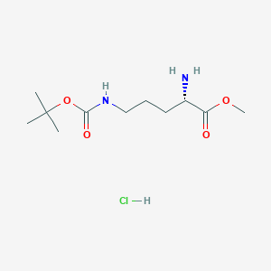 This compound is a derivative of the amino acid L-ornithine. It features a methyl ester protecting the carboxylic acid group and a tert-butyloxycarbonyl (Boc) group protecting the side-chain (delta) amino group. The primary alpha-amino group is unprotected and exists as a hydrochloride salt, which enhances the compound's stability and handling characteristics.