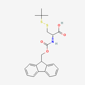 This compound is a derivative of the non-proteinogenic D-cysteine, where the alpha-amino group is protected by the base-labile 9-fluorenylmethyloxycarbonyl (Fmoc) group, and the side-chain thiol is protected by the reducible S-tert-butylthio (StBu) group.[1] Its key physical and chemical properties are summarized below.