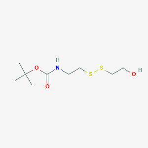tert-Butyl (2-((2-hydroxyethyl)disulfanyl)ethyl)carbamate is a synthetic compound notable for its structural features, including a tert-butyloxycarbonyl (Boc) protecting group, a disulfide bond, and a hydroxyl group. Its molecular formula is C₉H₁₉N₁O₃S₂, with a molecular weight of 253.38 g/mol. This compound has garnered interest in various fields, particularly in medicinal chemistry and biotechnology, due to its potential biological activities.