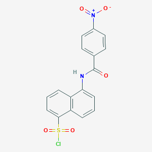 5-[(4-Nitrobenzoyl)amino]naphthalene-1-sulfonyl chloride is a chemical compound known for its applications in various scientific fields. It is characterized by the presence of a naphthalene ring, a sulfonyl chloride group, and a nitrobenzoyl group. This compound is often used in organic synthesis and analytical chemistry due to its reactivity and functional groups.