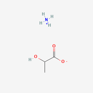 Ammonium lactate (C₃H₉NO₃) is a water-soluble salt formed by the neutralization of lactic acid with ammonia. It is widely utilized in industrial, agricultural, and pharmaceutical applications. In biotechnology, it serves as a pH regulator in lactic acid fermentation, where ammonia neutralizes lactic acid to form this compound, which can later be acidulated to recover lactic acid . In dermatology, it is a key ingredient in moisturizers (e.g., 12% this compound lotion) for treating xerosis (dry skin) and ichthyosis due to its keratolytic and humectant properties . Agriculturally, it acts as a non-protein nitrogen source in cattle feed, enhancing milk quality compared to urea or ammonium citrate .