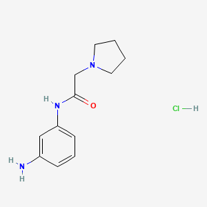 N-(3-aminophenyl)-2-(pyrrolidin-1-yl)acetamide hydrochloride is a chemical compound with potential applications in various fields such as chemistry, biology, medicine, and industry. This compound features an amine group attached to a phenyl ring and a pyrrolidinyl group, making it a versatile molecule for research and development.
