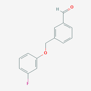 The synthesis of 3-((3-Fluorophenoxy)methyl)benzaldehyde typically involves the reaction of 3-fluorophenol with benzyl chloride under basic conditions to form 3-((3-fluorophenoxy)methyl)benzene. This intermediate is then oxidized using an oxidizing agent such as pyridinium chlorochromate (PCC) to yield the final product, this compound .