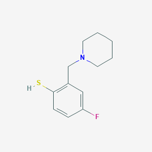 The synthesis of 4-Fluoro-2-(piperidin-1-ylmethyl)benzenethiol typically involves the introduction of a piperidine ring to a fluorinated thiophenol derivative. One common method is through a nucleophilic substitution reaction where a piperidine derivative reacts with a fluorinated thiophenol under basic conditions. The reaction is usually carried out in an organic solvent such as dichloromethane or tetrahydrofuran, and the temperature is maintained at room temperature to slightly elevated temperatures.