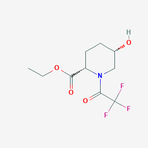 The mechanism of action of (2S,5S)-ethyl 5-hydroxy-1-(2,2,2-trifluoroacetyl)piperidine-2-carboxylate depends on its specific application. In medicinal chemistry, it may interact with biological targets such as enzymes or receptors, modulating their activity. The trifluoroacetyl group can enhance binding affinity and selectivity towards specific molecular targets, influencing the compound’s pharmacokinetic and pharmacodynamic properties.