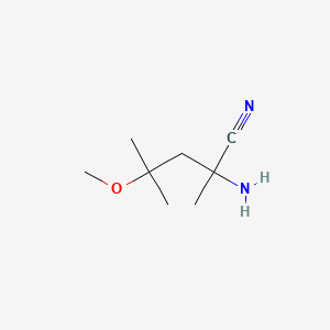 BenchChem offers high-quality Pentanenitrile, 2-amino-4-methoxy-2,4-dimethyl- suitable for many research applications. Different packaging options are available to accommodate customers' requirements. Please inquire for more information about Pentanenitrile, 2-amino-4-methoxy-2,4-dimethyl- including the price, delivery time, and more detailed information at info@benchchem.com.