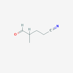 4-Methyl-5-oxopentanenitrile (CAS RN: 3619-38-3) is an organic compound with the molecular formula C₆H₉NO and an average molecular mass of 111.144 g/mol . Its structure features a five-carbon chain containing a ketone group at the fifth position and a nitrile group at the terminal end, with a methyl substituent at the fourth carbon. This compound is used in organic synthesis as an intermediate for pharmaceuticals, agrochemicals, and specialty chemicals due to its reactive nitrile and ketone functionalities .